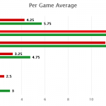 As seen in the above graphics, both teams have averaged 13.5 shots per game home/away respectively.