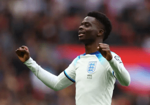 Bukayo Saka provided the assist for Harry Kane’s opening goal before he produced a stunning strike just moments later, as England clinched a dominant 2-0 home win over Ukraine to stay top of Group C.