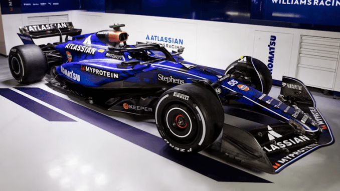 Williams’ new title partner, Atlassian was sported across the rear wing as the team ran a temporary navy blue livery, with the official livery set to be unveiled as part of F1 75 Live on 18 February at London’s O2 Arena.