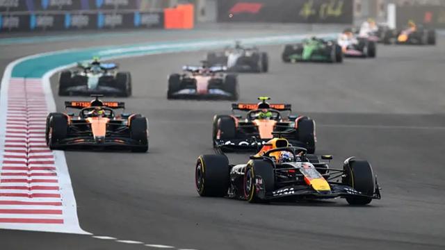Knowing that the title was out of his hands at lights out, Verstappen sliced across Norris to protect his lead from the Brit who lost second to Piastri as the Aussie swept round the outside of Turn 9 on faster hard tyres as McLaren split strategy to cover Red Bull’s approach off.