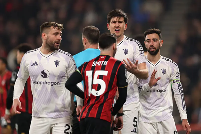 Third-placed Manchester United failed to close in on their local rivals after Bruno Fernandes’ penalty and James Hill’s own-goal twice put them ahead in an eventual 2-2 draw at Bournemouth. in which Ryan Christie’s finish and Eli Junior Kroupi’s penalty dragged the Cherries level amidst a red card for Utd’s Harry Maguire.