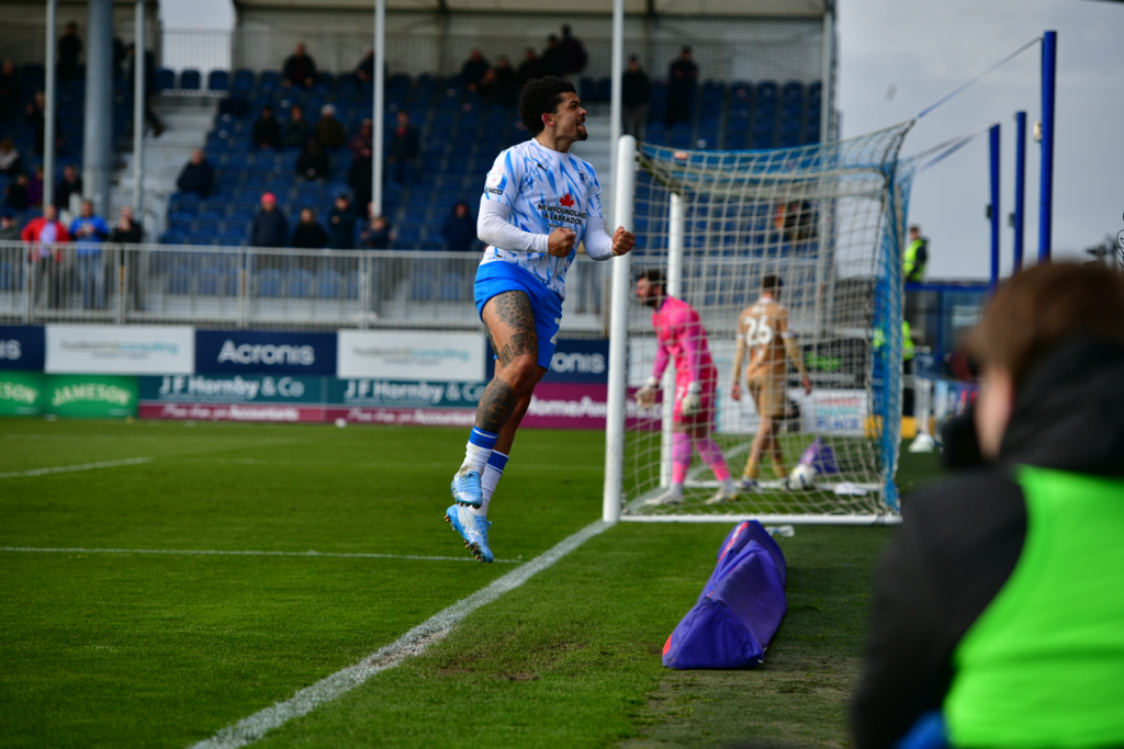 Charles subsequently stepped up a minute later with a free-kick which flew into the far-top right corner albeit with a helpful fingertip diversion from Barrow goalkeeper, Wyll Stanway, which proved enough for the Ravens to go into half-time in the lead.